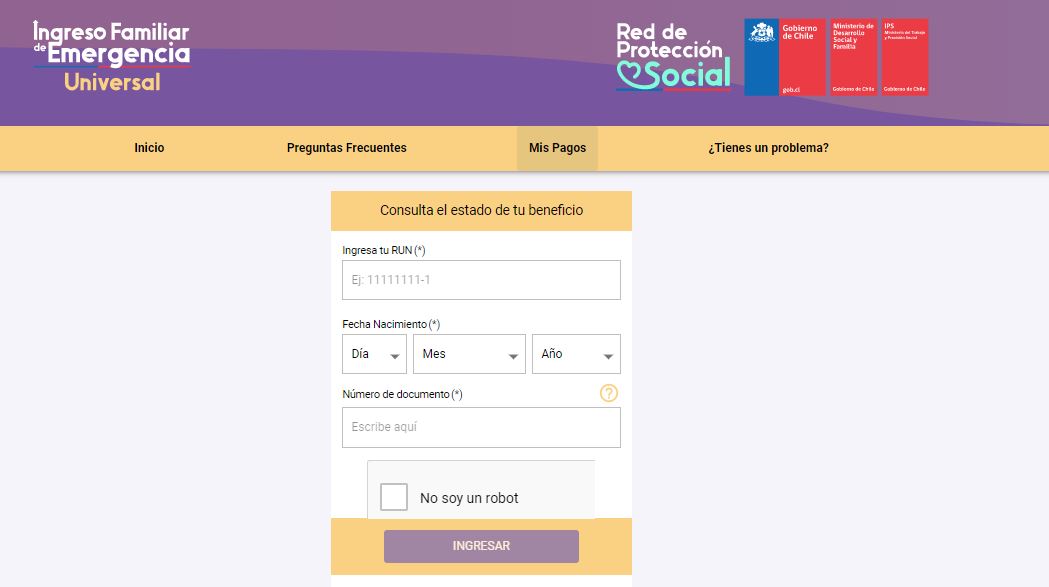 Este viernes 23 de julio comienza el pago de los montos del ingreso familiar de emergencia (ife) que vencieron en 2020, tras no ser cobrados presencialmente por sus respectivos destinatarios durante aquel año. Martes 13 de julio de 2021. Subsistema de seguridad y oportunidades (ssyoo) ingreso mínimo garantizado (img) asignación familiar. Para poder conocer si existen pagos del ife pendientes o caducados, la persona debe ingresar a la sección mis pagos del sitio web www.ingresodeemergencia.cl. Por ello, desde el ministerio de des.